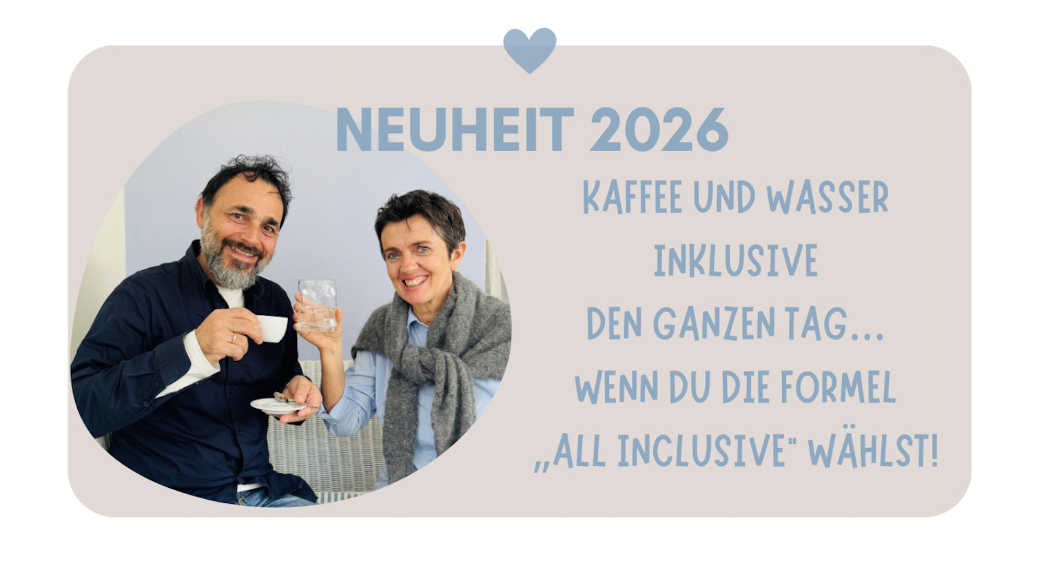 - NEUHEIT 2026: Kaffee und Wasser den ganzen Tag inklusive, mit der Formel „All Inclusive“.