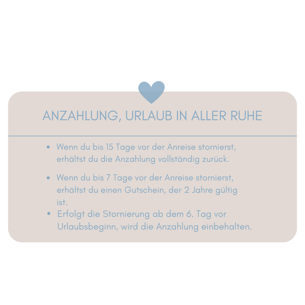 - Strandtücher & Relax: Beim Check-in werden 2 Tücher pro Zimmer zur Verfügung gestellt, mit einer Kaution von 10 € pro Tuch. 1 Wechsel pro Woche garantiert.